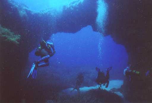 taucht man ab und einige Meter unterhalb der Oberfläche ist ein grosser Durchgang ins
