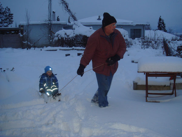 766 Schlittenfahrt in der Dämmerung mit Grosspapi