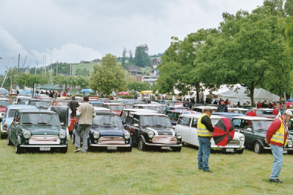 ankommenden Minis schön in Reih und Glied. Schätzungsweise waren bis am